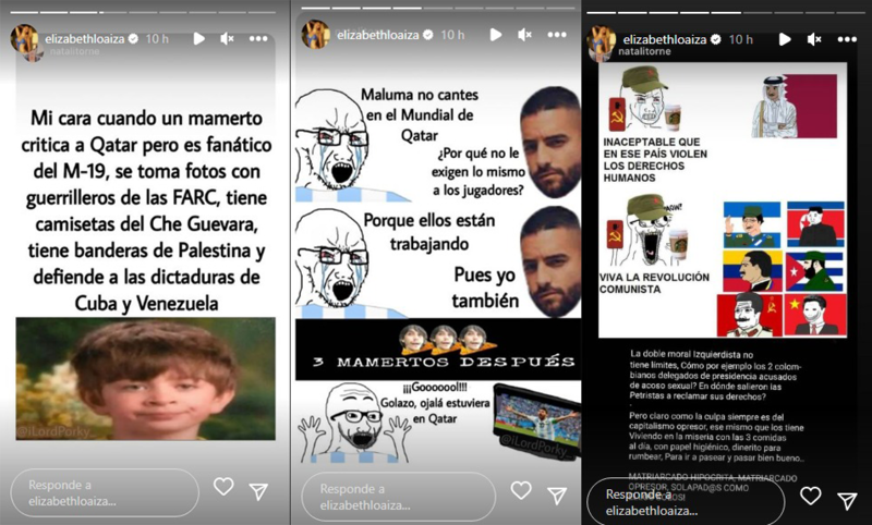 Además del meme en donde se menciona directamente a Maluma, Elizabeth Loaiza también compartió otro par más en donde se hace evidente su descontento por aquellos que critican a los profesionales involucrados en el Mundial, tildándolos de “doble moral”.
