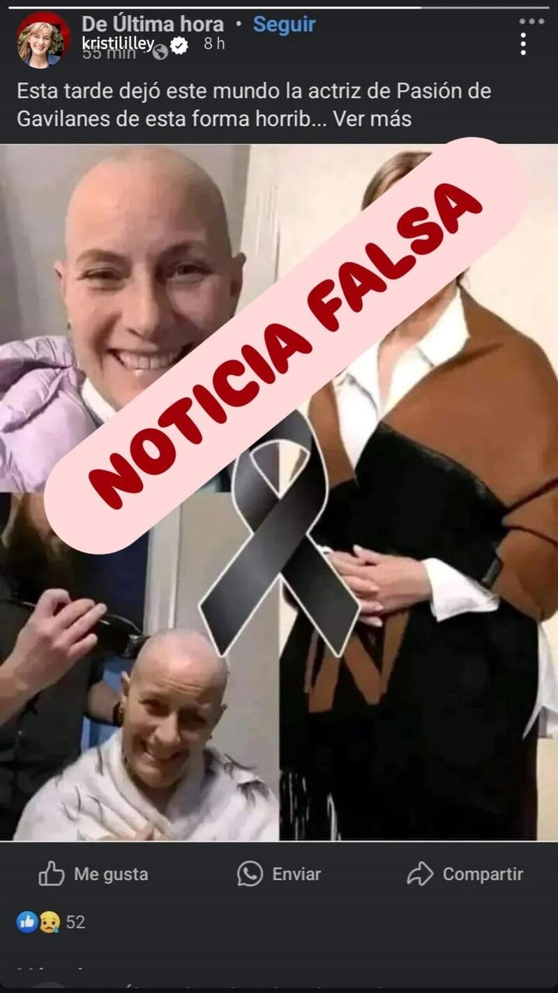 La reconocida actriz Kristina Lilley, recordada por su icónico papel en la telenovela Pasión de Gavilanes, ha salido a desmentir recientes rumores que circulaban en redes sociales acerca de su supuesta muerte. Estos rumores se intensificaron luego de que la actriz enfrentara una difícil batalla contra el cáncer de mama, situación que preocupó a muchos de sus seguidores. Sin embargo, Lilley se ha encargado de dejar claro que se encuentra con buena salud y que ha superado este duro episodio de su vida.