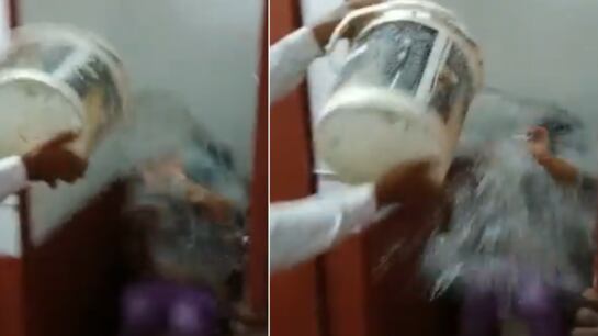 En las imágenes que se conocieron se observa como tres personas, dos vigilantes que salen en cámara y el que graba se acercan a la puerta del baño en el que se encuentra la mujer haciendo sus necesidades, uno de ellos levanta el baldado de agua, mientras que el otro abre la puerta y entre risas, le lanzan el agua.