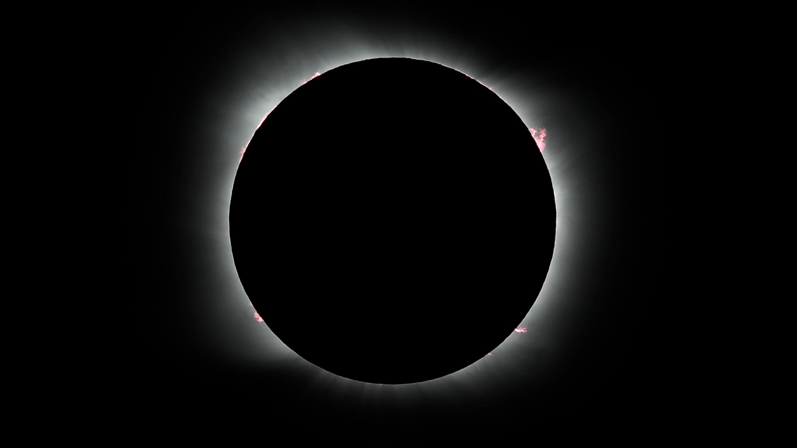 Una vez que el anillo de diamantes desaparezca y ya no haya luz solar directa, es cuando se puede quitar los anteojos para eclipses y mirar el eclipse total de forma segura a simple vista. Este momento también se llama segundo contacto. Durante la totalidad, es posible que los espectadores vean la cromosfera (una región de la atmósfera solar que se ve como un delgado círculo de color rosa alrededor de la Luna) y la corona (la atmósfera exterior del Sol, que se ve como rayos de luz blanca).