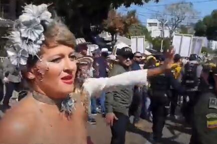 Todo, por cuenta del amplio despliegue de seguridad alrededor de Verónica Alcocer. Este desfile se ha caracterizado por el contacto directo entre danzantes y el público instalado a lado y lado de la vía. Eso diferencia al Carnaval de la 44 de otros eventos.