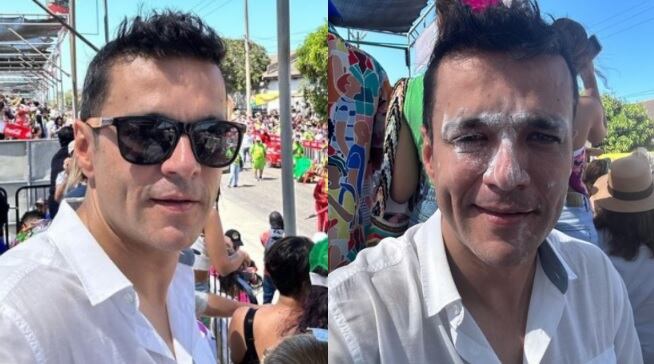 En sus redes, Juan Diego Alvira, colocó ubicación y escribió que se encontraba “carnavaleando”. Fue así cómo el periodista publicó una foto en la que pintaron su cara con harina que la costumbre en esta época de Carnaval. Además advirtió que hacía un “solazo” en la tradicional vía 40 donde se desarrolla este recorrido.