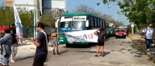 Manifestantes y líderes estudiantiles de la Universidad del Atlántico convocaron este miércoles a un plantón pacífico en el corredor universitario contra del alza de tarifas de Transmetro y demás buses urbanos en Barranquilla.