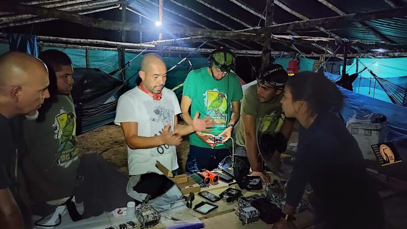 Estos expertos estuvieron diez días aislados en estos montes del 15 al 25 de febrero de 2023, pero antes de esto comienza la preparación de campo con un campamento que lleva construirlo por lo menos con un mes de anticipación en medio de la selva. El lugar contó con una enramada, con aislante para colgar hamacas o armar carpas. En el campamento se instaló un baño campesino, una cocina y ese era el punto de partida de dónde salieron los expedicionarios a buscar este periquito a través de monitoreo constante en este cerro de Murrucucú.