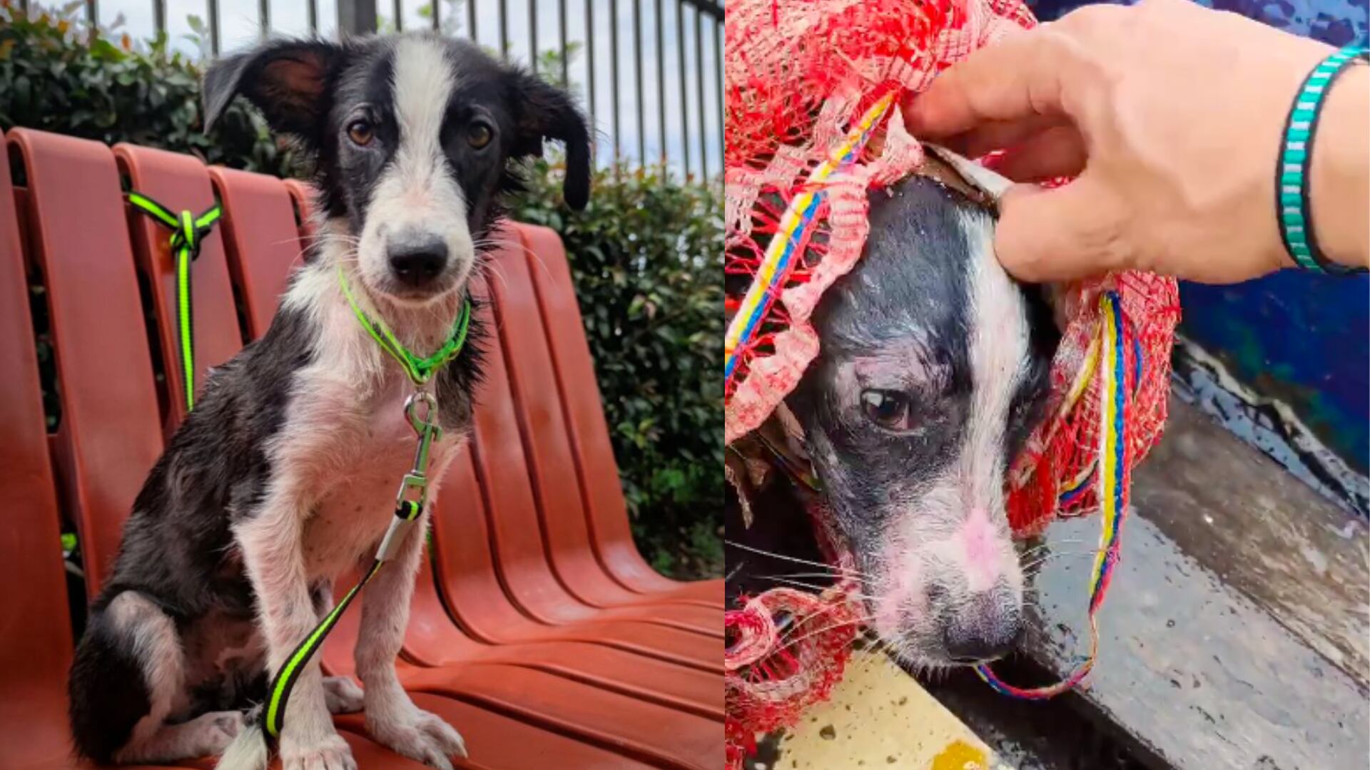 Fue en ese momento en que se percataron que en su interior había una perrita de color blanco y negro y ojos miel, completamente asustada, mojada y llena de frío.