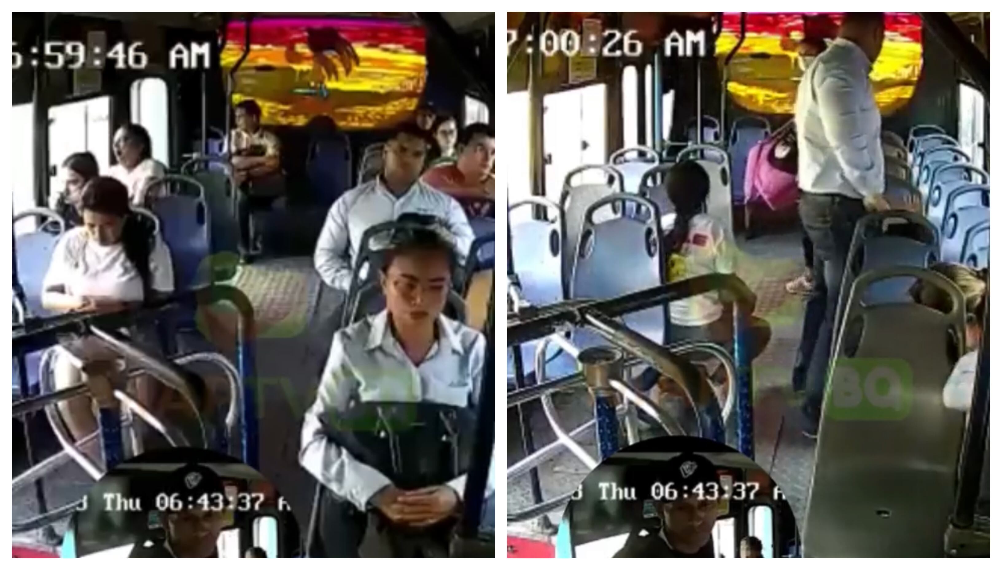 En el video, que ya se hizo viral, se ve que el ladrón está ubicado en la última banca del bus. De repente, se pasa de silla, saca una pistola y le apunta a una de las pasajeras.