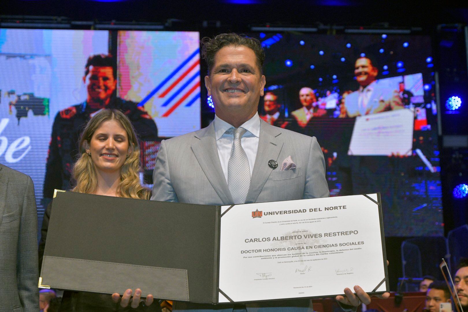 El artista samario Carlos Vives recibió por parte de la Universidad del Norte su doctorado Honoris Causa en Ciencias Sociales, por haber promovido la identidad y la cultura del Caribe colombiano.