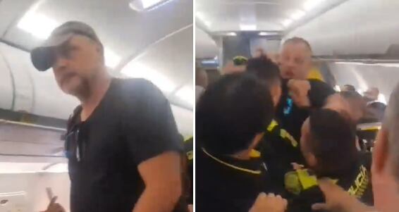 A través de las redes sociales se conoció el video en el que se observa el momento exacto de la agresión a policías colombianos por parte de un extranjero, que protagonizó una trifulca en un vuelo que salía de Barranquilla con destino a la ciudad de Miami. El hombre debió ser expulsado del avión antes de que pudiera despegar.