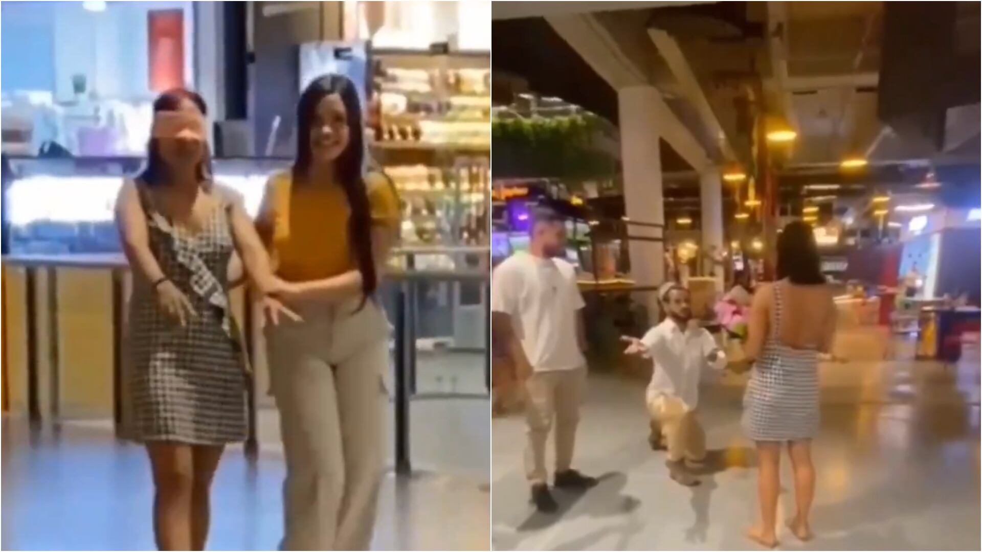 La alegría y emoción inicial se tornaron en sorpresa y desilusión cuando la novia, ante la atenta mirada de todos, decidió rechazar la propuesta de matrimonio. Pero no solo eso, sino que también le lanzó las flores y el anillo por la cara, acto seguido salió corriendo del lugar. El joven, visiblemente afectado por la inesperada respuesta, vivió un momento embarazoso y lleno de decepción en medio del centro comercial, sin embargo, sus amigos lo acompañaron y por el video se pudo notar que se sentaron a tomar en un local del lugar.