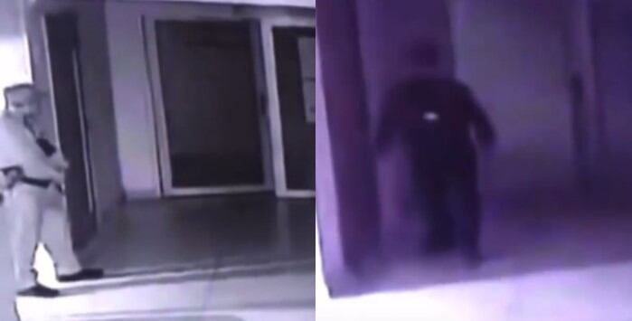 Después viene el momento más escalofriante de la grabación cuando en la puerta de una oficia vacía se ve una luz flotando al otro lado de una puerta de vidrio. “Me encalambré en ese momento”, dijo el hombre asustado en la grabación, quién todavía no se explica qué fue lo que ocurrió.