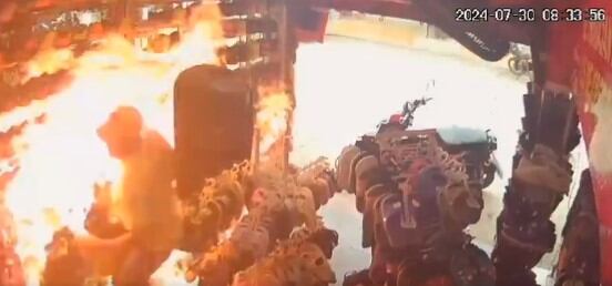 En la mañana del martes 30 de julio, un hombre incendió un local comercial en el municipio de Aguachica, Cesar, presuntamente perteneciente a su expareja. El incidente, capturado por cámaras de seguridad, muestra al individuo llegando en motocicleta al establecimiento ubicado en el parque San Antonio y provocando el fuego. Primero roció con gasolina los estantes y la mercancía y después le prendió fuego premeditamente.