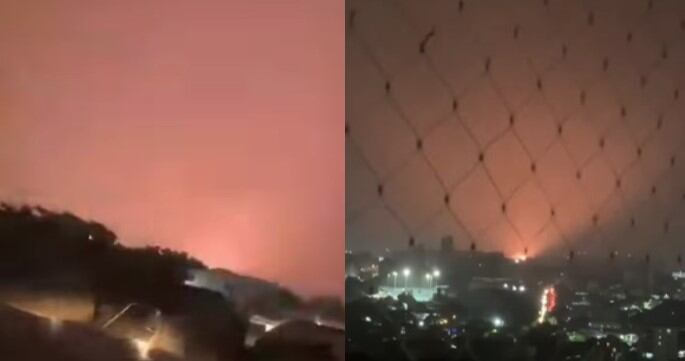 Varios usuarios en redes han reportado que vieron y grabaron en sus celulares luces rojas y verdes que encendieron el cielo en medio de los intensos vientos. Algunos afirmaron que las luces se vieron por el estallido de varios transformadores de energía en áreas residenciales. Otros no le encontraron explicación al extraño fenómeno.
