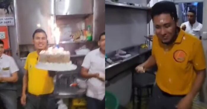 Un video viral ha generado asombro en redes sociales luego de que un pastel de cumpleaños explotara en la cara del festejado por el uso de una vela con pólvora. El incidente ocurrió en un local de comidas en Sincelejo, donde un grupo de trabajadores celebraba un cumpleaños.