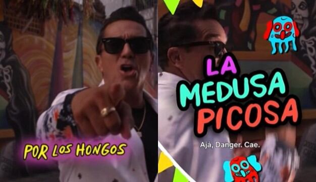“Por los hongos alucina y su mente ya sin fin olvida los recuerdos que su corazón calcina. Y aunque se las tira de adivina, mira como pelea, como una medusa envenena por la arenosa pasea y un policía que la desea. La vaina aquí se puso buena.