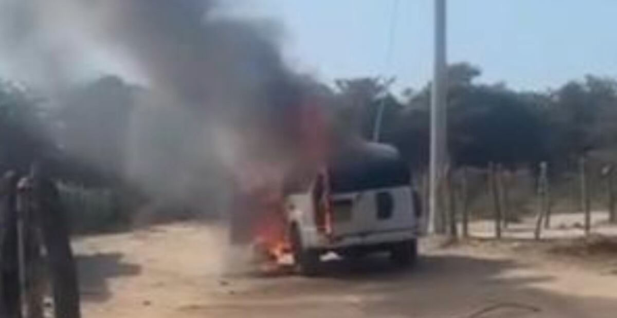 Robo aeropuerto de Riohacha: ladrones quemaron una camioneta con fajos de dinero