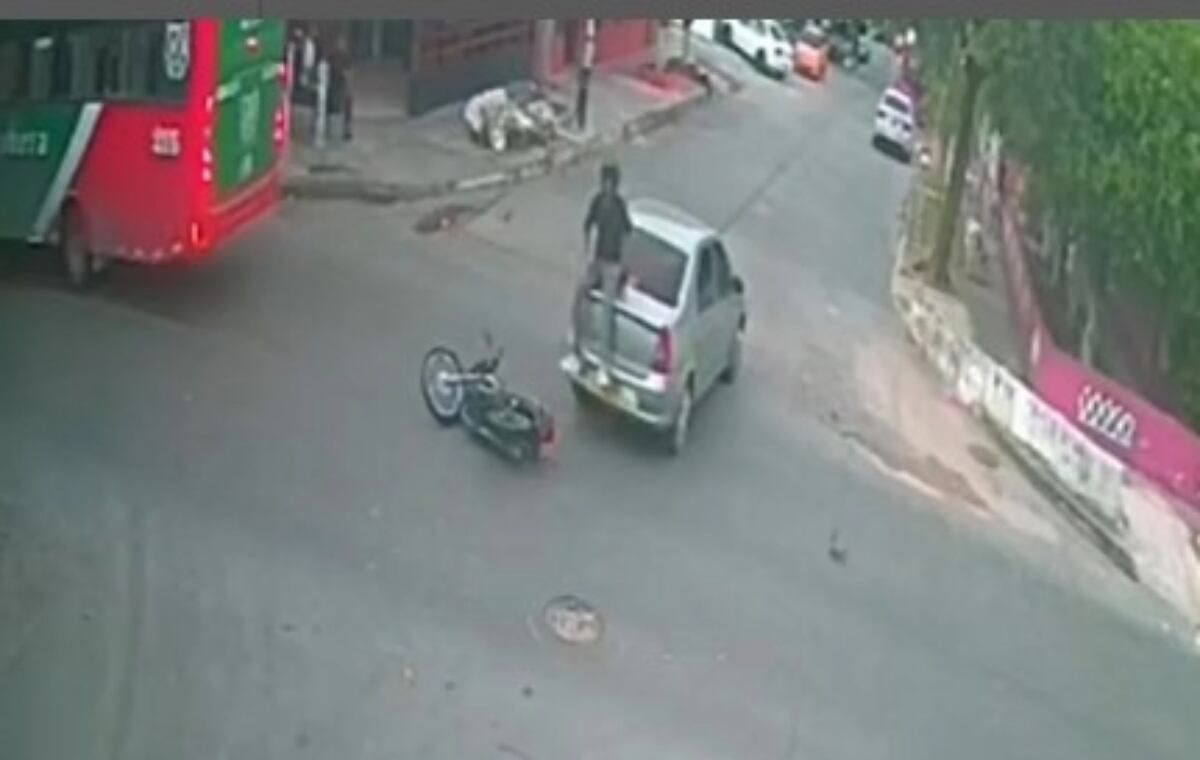 Un accidente de tránsito inusual fue captado por una cámara de seguridad en la intersección de la carrera 14 con calle 40, en el barrio La Victoria, generando sorpresa en redes sociales. En el video, se observa el momento exacto en que un motociclista impacta fuertemente contra un vehículo particular. Lo curioso del hecho es que, tras la colisión, el conductor de la moto no cae al suelo ni resulta expulsado, sino que termina sentado sobre el capó del carro, como si se hubiera colocado allí voluntariamente.