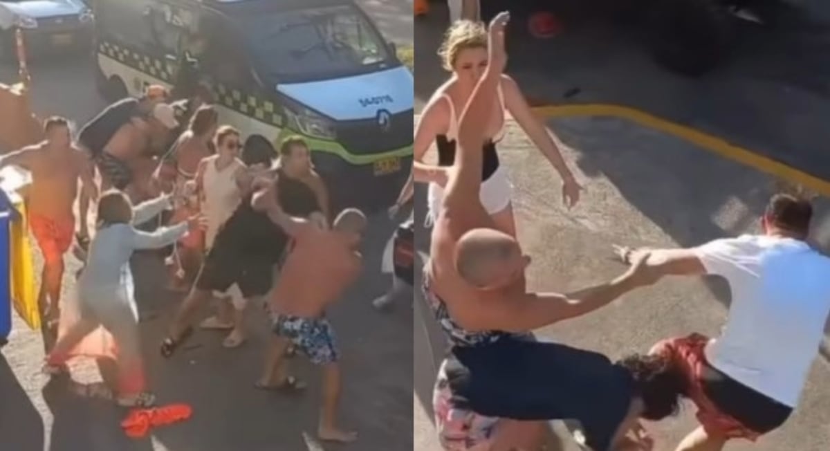 La situación rápidamente se tornó violenta en medio de los carros de alquiler que se rentan en esa zona. Nadie conoce el origen de la discusión, lo cierto es que de los insultos verbales, estos turistas pasaron de los golpes a las patadas y puños “todo el mundo pelea” como en la canción de Diomedes Díaz y así se puede apreciar en el curioso video de los hechos que se hizo viral en redes. Testigos aseguran que la pelea escaló hasta el punto en que uno de los involucrados se golpeó con fuerza contra el borde de un andén, sufriendo una lesión que obligó a su traslado al hospital más cercano. La víctima fue atendida por personal médico, aunque no se han confirmado detalles sobre la gravedad de sus heridas.