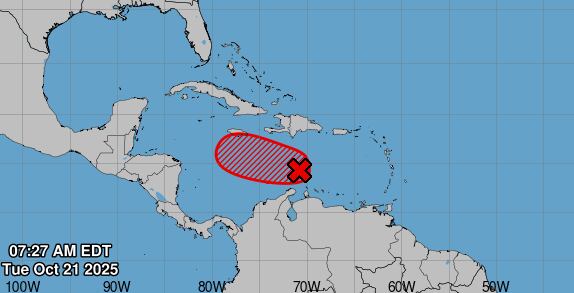 El Centro Nacional de Huracanes, con sede en Miami, advirtió que existe un 100 % de probabilidad de que la onda tropical que atraviesa el Mar Caribe mantenga su desarrollo y gane fuerza mientras se desplaza lentamente hacia el noroeste. “Las observaciones satelitales y de radar muestran un centro bien definido con vientos sostenidos de hasta 45 millas por hora. Se espera que la tormenta tropical Melissa se consolide a medida que pierde velocidad en el Caribe central”, detalló el organismo.