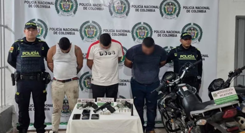 La rápida reacción de la Policía permitió frustrar el intento de robo a carro de valores y desplegar un operativo que terminó con la captura de los seis presuntos responsables. Durante el procedimiento, las autoridades incautaron armas de fuego y decomisaron dos motocicletas que, al parecer, fueron utilizadas para ejecutar el plan criminal.