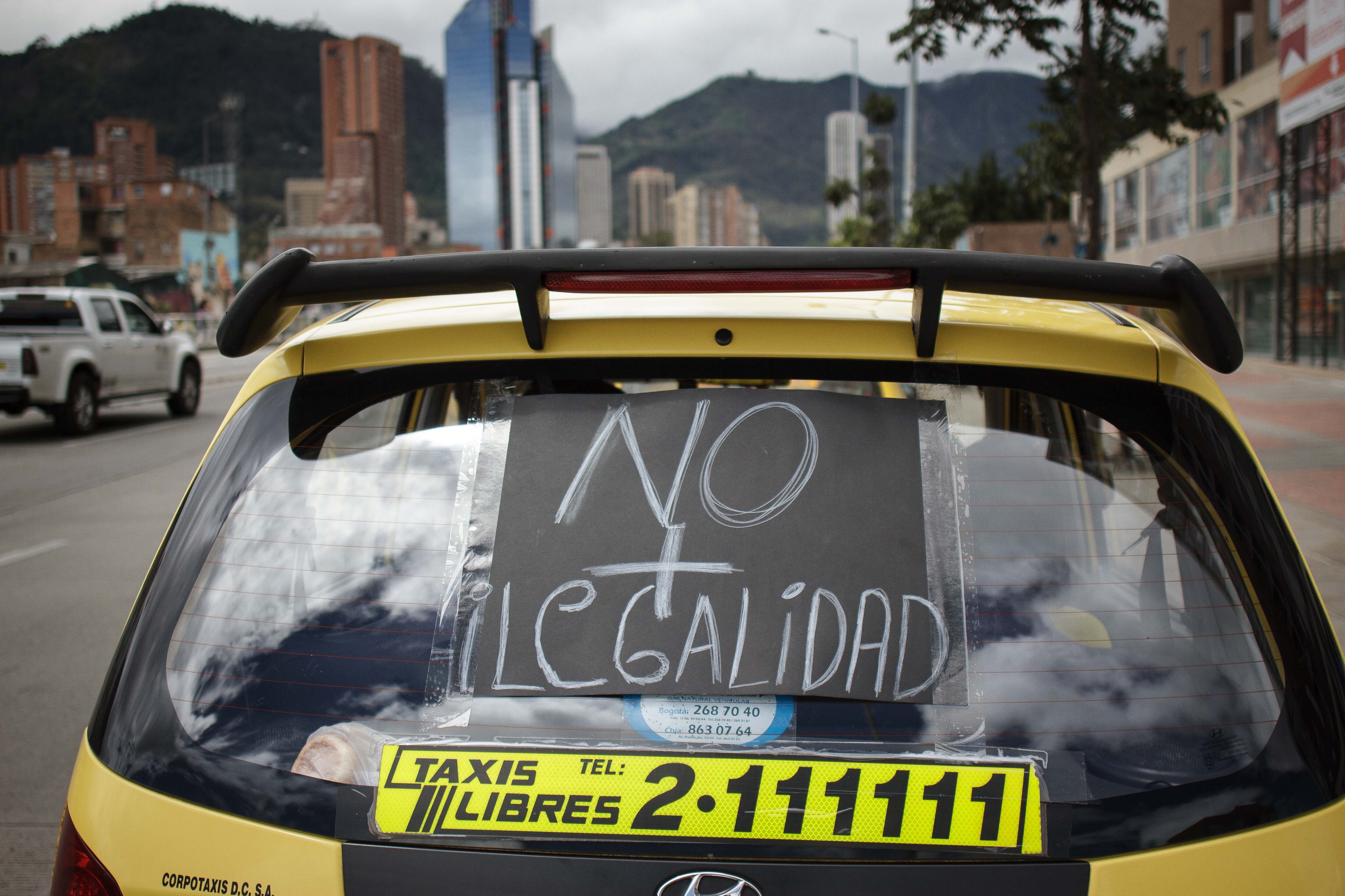 Paro de taxistas convocado en julio del 2019 en Bogotá. Los taxistas exigen que se eliminen las plataformas digitales de transporte. (Juan Pablo Pino)