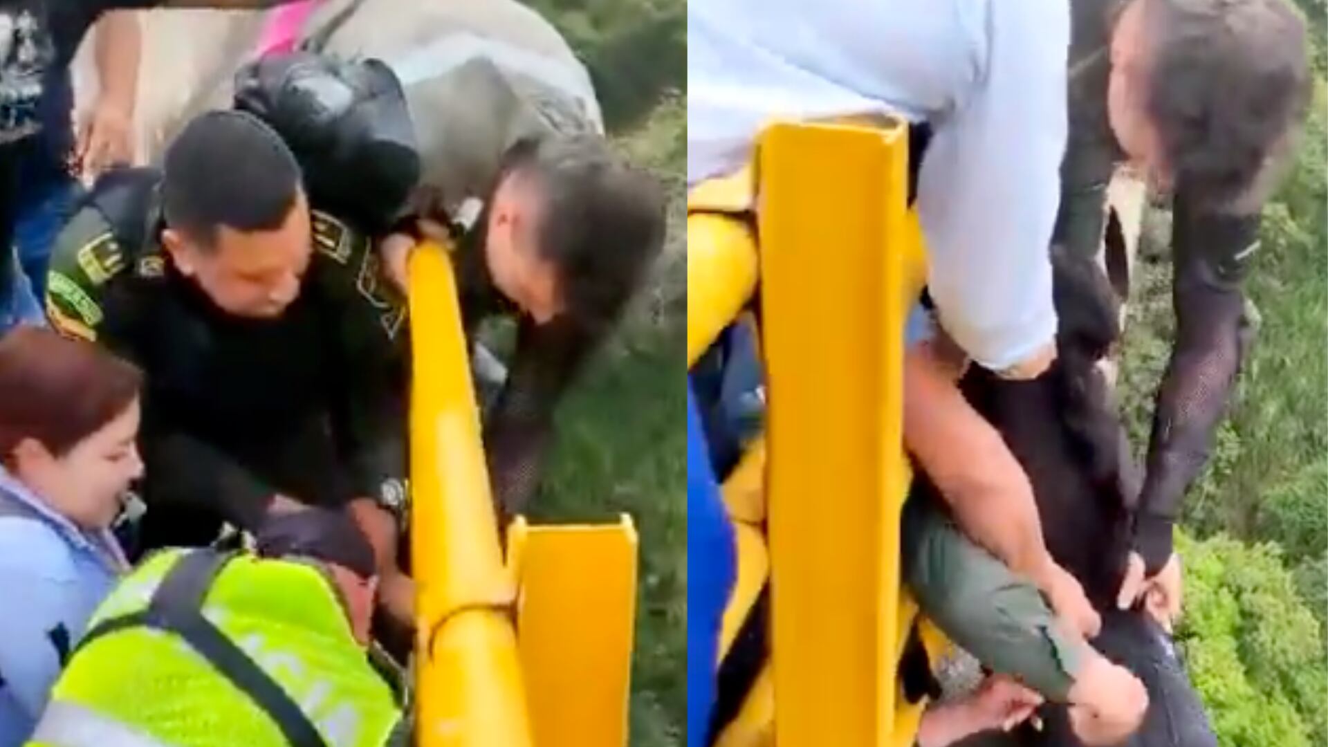 Un video grabado por un testigo, da cuenta de los minutos de angustia que ellos y demás transeúntes, vivieron para rescatarla y evitar que se lanzara al vacío. “Bien, bien, muchachos. Téngala duro, por favor. Venga nena, por favor no”, dice con miedo, quién graba.