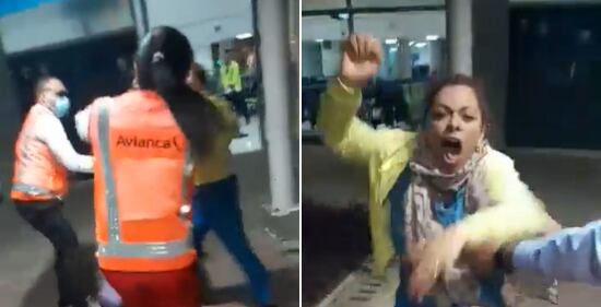 En las imágenes que circulan en internet se observa a la mujer que está tratando de golpear en la cara a la trabajadora de Avianca mientras ella se trata de defender, ante los gritos de la pequeña.
