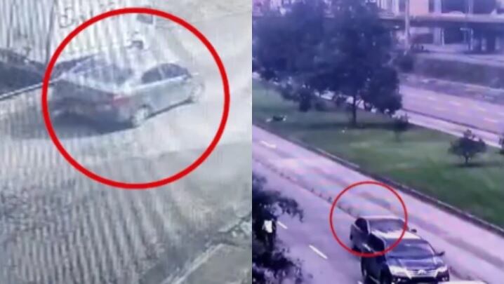 Después, salen del carro y terminan huyendo por los canales de la principal avenida. Incluso, se ve cómo una mujer se mete a un caño de la ciudad de Bogotá para tratar de despistar a los oficiales.