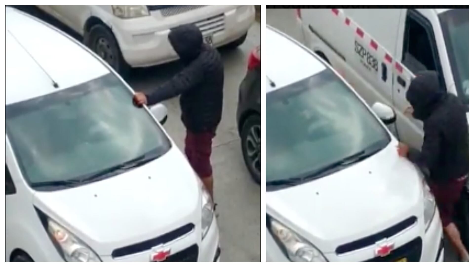Sin embargo, justo al lado, el conductor de otro vehículo se percató de la situación y puso en marcha su carro con el fin de golpear con este al ladrón y frustrar el hurto. Gracias al gesto del otro conductor, el ladrón quedó atrapado entre los dos vehículos y tuvo que hacer varios esfuerzos para salirse, mientras que la víctima se salvó de que le robaran los espejos.