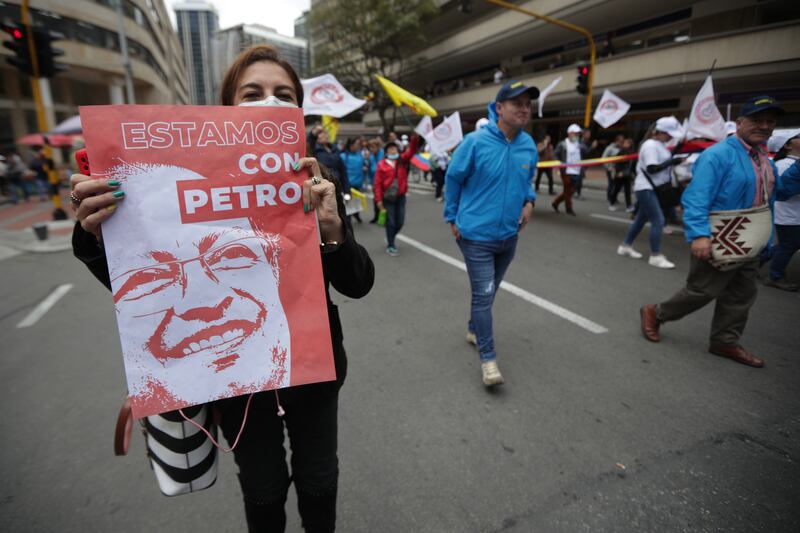 Seguidores del presidente Gustavo Petro marchan en apoyo a su gobierno por las calles de Bogotá