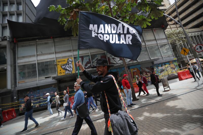 En medio de las manifestaciones, matizadas con expresiones artísticas, estuvo la ministra de Trabajo, Gloria Inés Ramírez, quien llamó a los partidos políticos a que “reflexionen” y “no cierren la puerta para que Colombia transite hacia los derechos”.