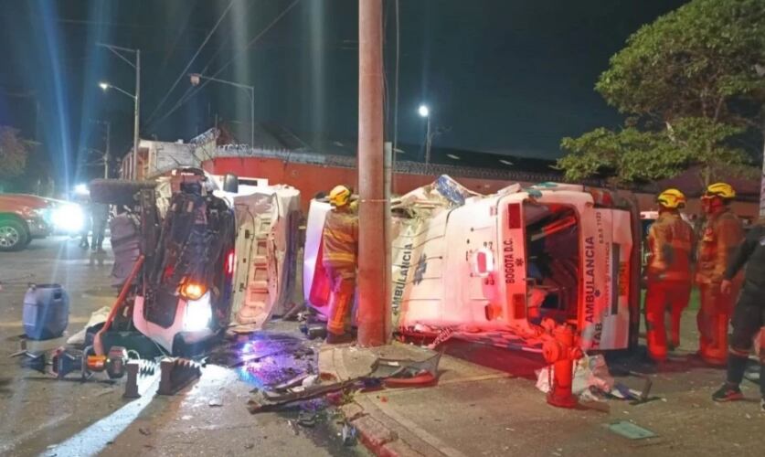 En pleno centro de Bogotá, exactamente sobre la Carrera 34 con la Calle 17, ocurrió un accidente de tránsito durante la noche del miércoles que fue atendido de inmediato por las autoridades. El hecho involucró a dos ambulancias que, lamentablemente, terminaron volcadas y tres personas resultaron heridas.