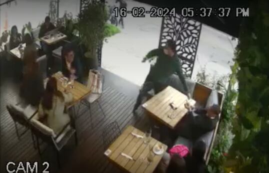 En la grabación se puede observar a tres delincuentes, dos llegaron abordo de motocicletas y uno llegó caminando. El primero en ingresar al establecimiento fue el hombre que iba a pie, llevaba puesto un buzo verde y un tapabocas, al momento de entrar sacó el arma y comenzó a robar a los comensales que estaban departiendo en el lugar.
