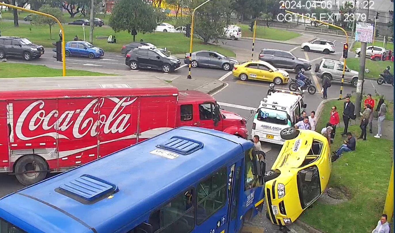 De acuerdo con el reporte de las autoridades, el accidente se produjo entre un bus del Sistema Integrado de Transporte (SITP) y el mencionado taxi. En las imágenes, que fueron compartidas por las mismas autoridades, se observa que el taxi está volcado en uno de los separadores de la avenida de Las Américas, mientras que el bus del Sitp está parqueado en una orilla del corredor vial.