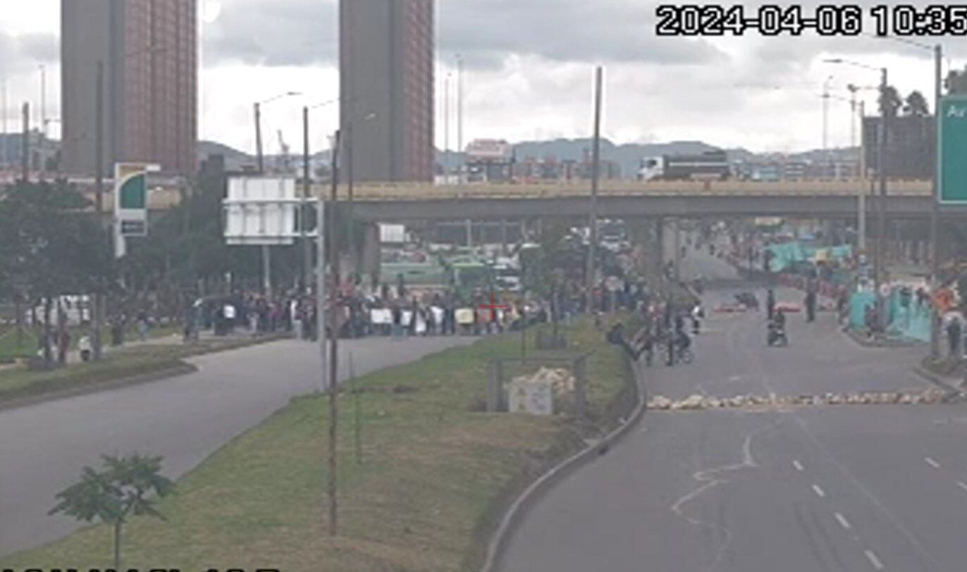 La avenida Ciudad de Cali, a la altura de la calle 13 A, permanece bloqueada a esta hora por varios manifestantes que están protestando en ambos sentidos.