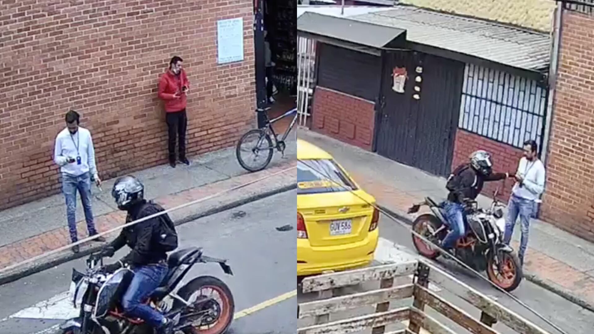 La inseguridad en Bogotá no da tregua y en esta ocasión una cámara de seguridad evidenció cómo un ladrón que se transportaba en motocicleta, hurtó de su celular a un ciudadano que se encontraba en la cera de una vía en la localidad de Engativá.