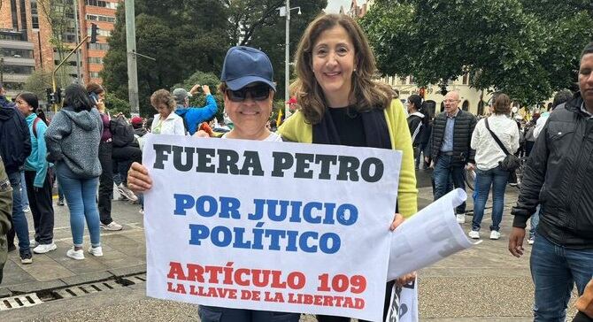 Una de las opositoras al gobierno del Pacto Histórico es la excandidata presidencial Ingrid Betancourt quien además se publicar un video con una canción apoyando las marchas también participa de ellas este domingo en Bogotá. En su mensaje respaldó que Petro debería tener un “juicio político”.