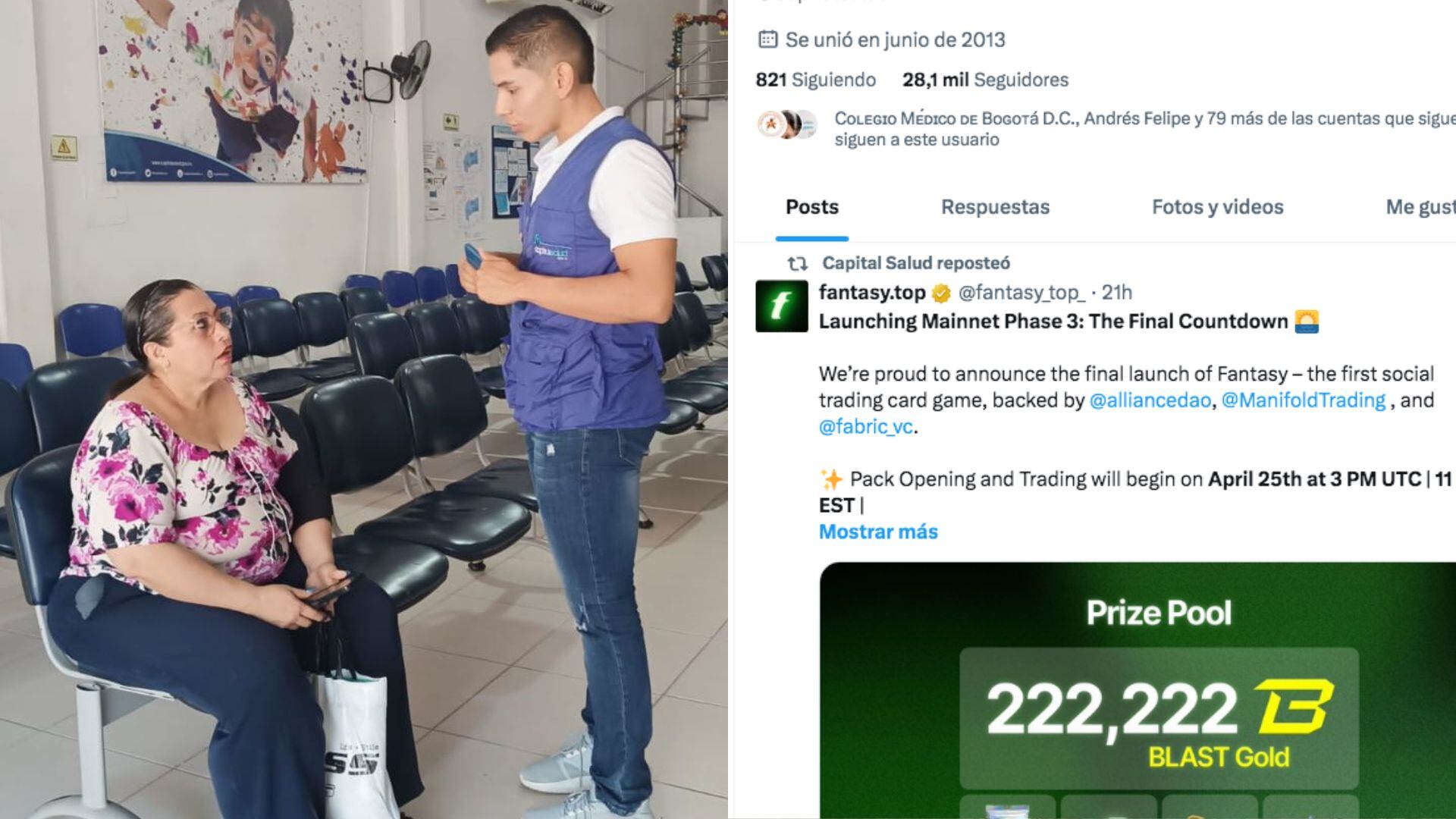 Efectivamente, la cuenta de X está teniendo un comportamiento distinto en las últimas horas. Los atacantes borraron la foto de perfil de Capital Salud y dejaron el perfil sin ningún ícono. Así mismo, ha empezado a retuitear contenidos de una cuenta que promociona una app conocida como fantasy.