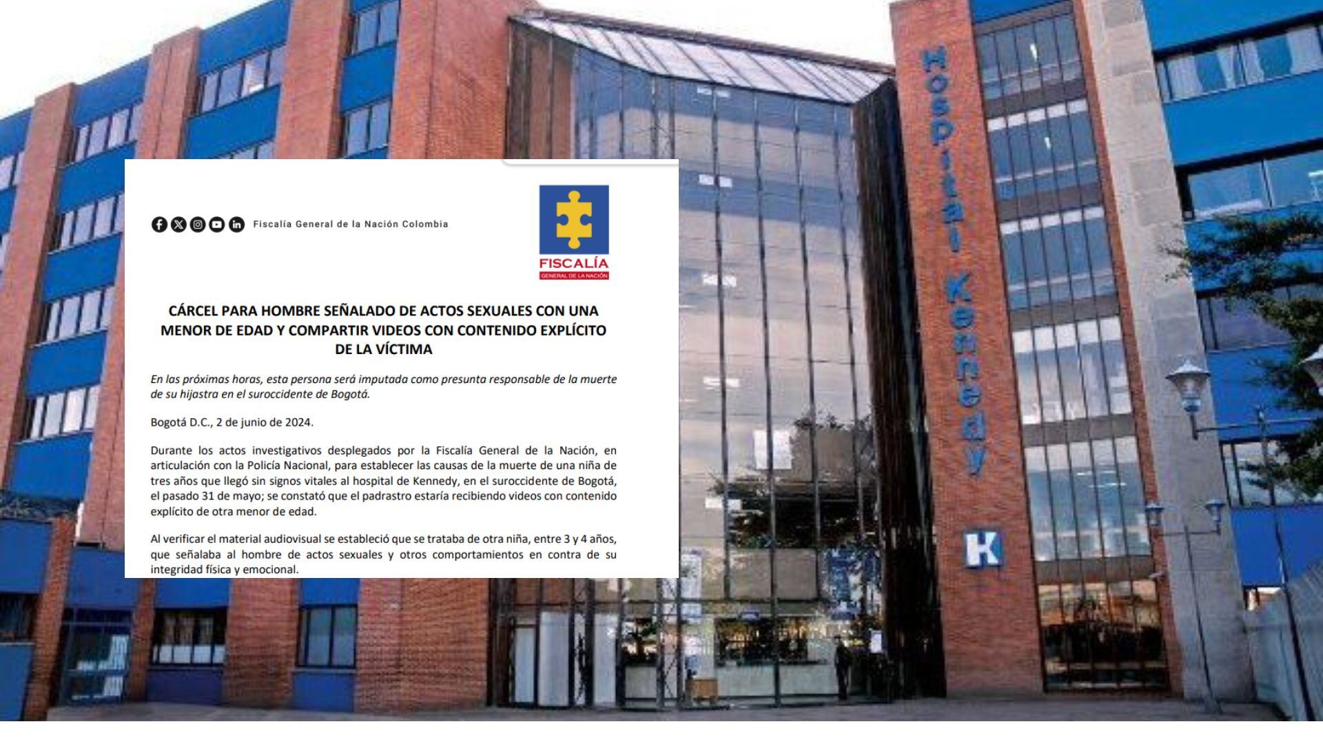 “Durante los actos investigativos desplegados por la Fiscalía General de la Nación, en articulación con la Policía Nacional, para establecer las causas de la muerte de una niña de tres años que llegó sin signos vitales al hospital de Kennedy, en el suroccidente de Bogotá, el pasado 31 de mayo se constató que el padrastro estaría recibiendo videos con contenido explícito de otra menor de edad”, indicó el ente investigador en su boletín de prensa.