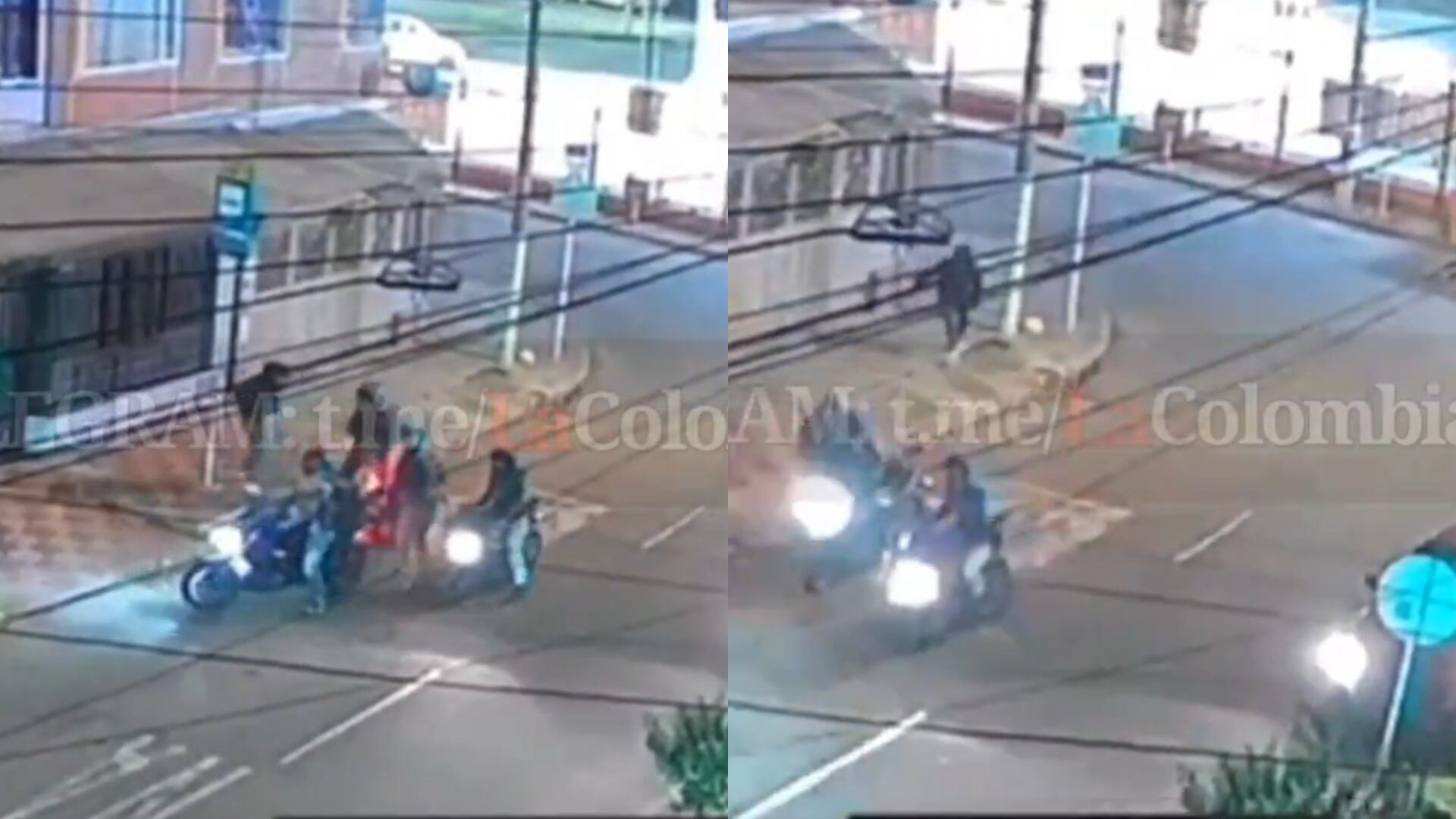 La inseguridad en Bogotá continúa atemorizando a los ciudadanos, donde cada vez más aumentan los casos de robo y hurto en todas sus modalidades. En esta ocasión una cámara de seguridad logró captar el momento en el que cuatro ladrones que se movilizaban en dos motos, intentaron robar un motociclista.