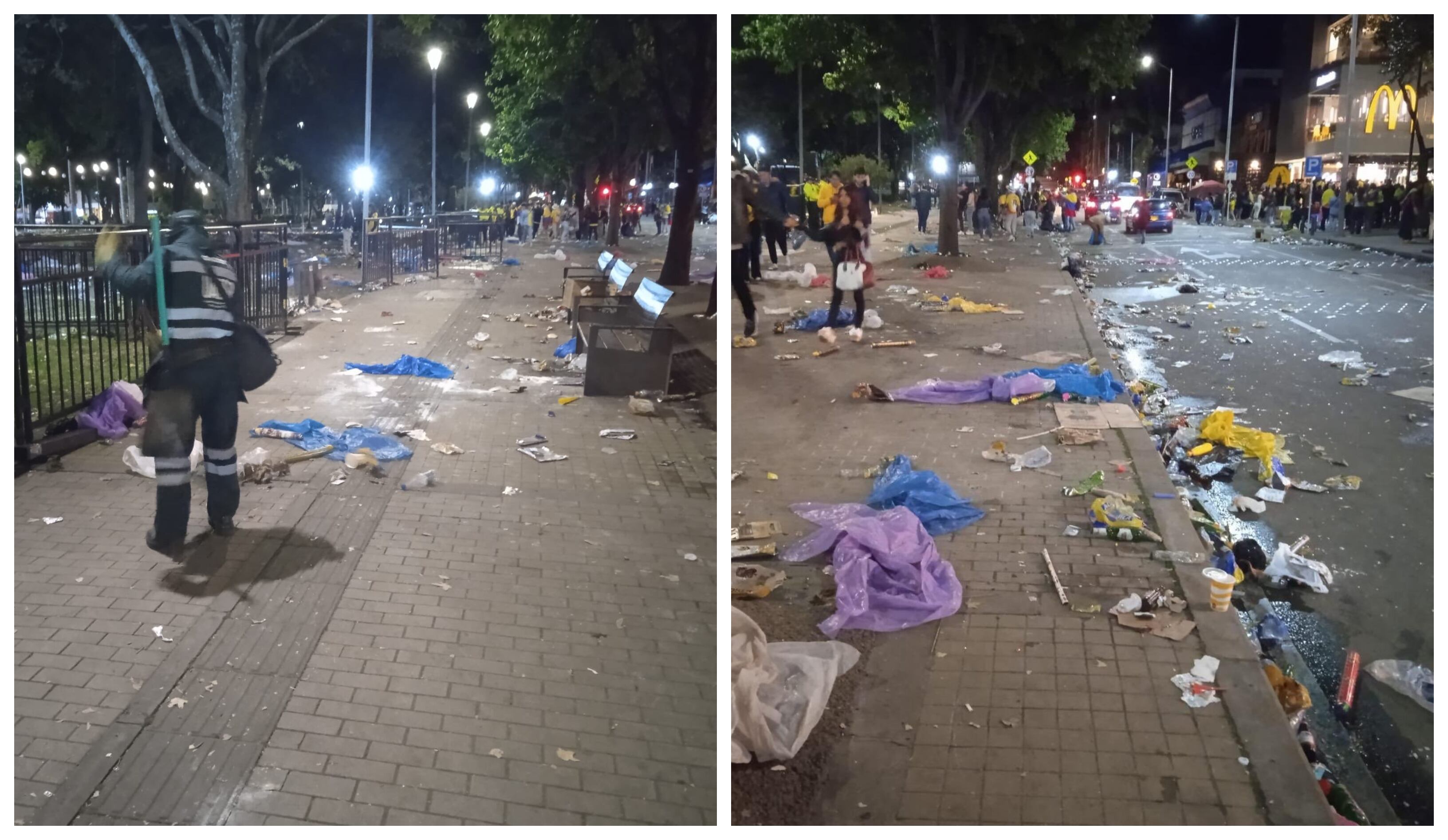 Según las fotos compartidas por Consuelo Ordóñez directora de la Uaesp, en la 93 quedaron decenas de desechos tirados en el pasto y las calles. Lo que llevó a que los llamados ‘escobitas’ tuvieran que limpiar el desorden que quedó allí.
