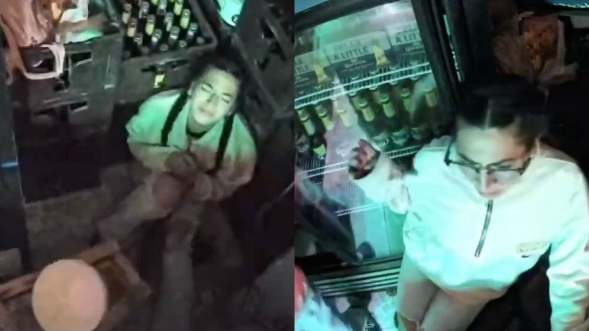 De repente, sin que se vea bien por qué, él sufre un duro golpe que lo empuja hacia una de las neveras del negocio. Luego, el hombre desaparece del encuadre. La mujer solo atina a decirle al hombre que irrumpió en su negocio “tranquilo, tranquilo”. Pero eso no evita que el delincuente, que tiene una gorra roja y una chaqueta negra, se abalance sobre ella.