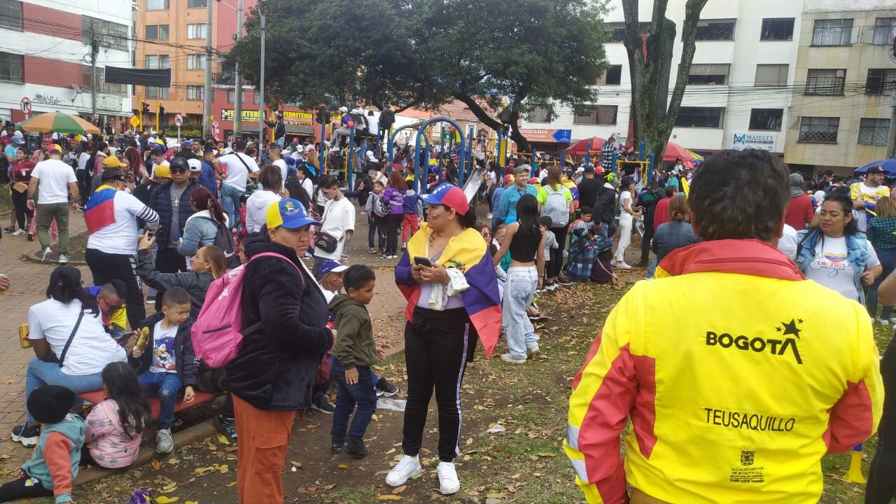 “A esta hora se registra una gran aglomeración de personas en el Parque Alfonso López, en apoyo a los comicios electorales en Venezuela. La Policía Metropolitana de Bogotá, así como nuestro equipo de gestores de seguridad y convivencia ya se encuentran en la zona”, indicó la Alcaldía local de Teusaquillo a través de su cuenta en la red social X sobre las 3:20 de la tarde.