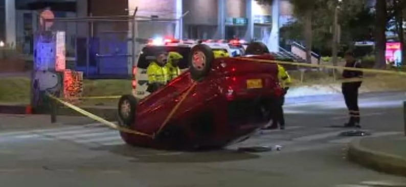 Taxistas que hacían piques ilegales en Bogotá volcaron carro de una familia en aparatoso accidente