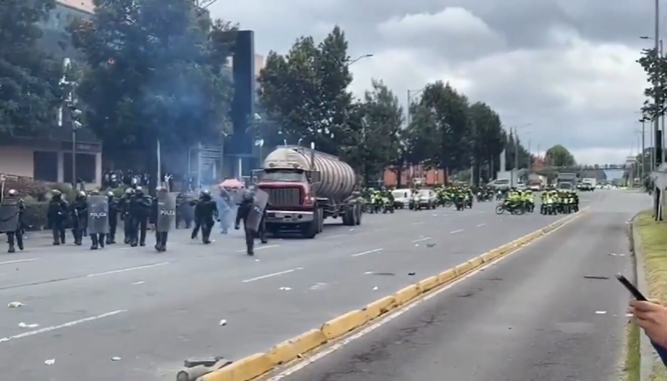 En la mañana de este jueves 5 de agosto el alcalde de Bogotá, Carlos Fernando Galán, confirmó que los mandatarios locales recibieron el visto bueno del Gobierno Nacional para intervenir algunos de los bloqueos que se están produciendo en el marco del paro camionero que afecta al país. Por ello, en varios puntos de la capital se observó la presencia de múltiples uniformados de la Unidad de Diálogo y Mantenimiento del Orden (UNDMO, antes conocida como Esmad).