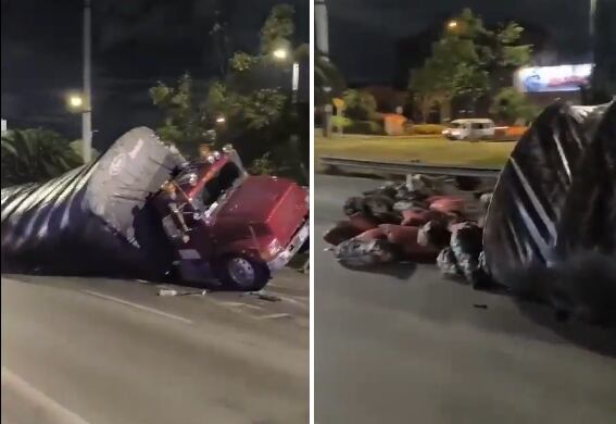 En la madrugada de este martes, 17 de septiembre, se registró un grave un accidente de tránsito en la Autopista Norte de Bogotá, a la altura de la calle 152, en donde un camión cargado de papas presentó una falla mecánica perdiendo las llantas trasera, lo que provocó que se volcara y la carga de papas quedara esparcida por toda la vía. Por el momento, las autoridades no reportan personas heridas por el incidente.