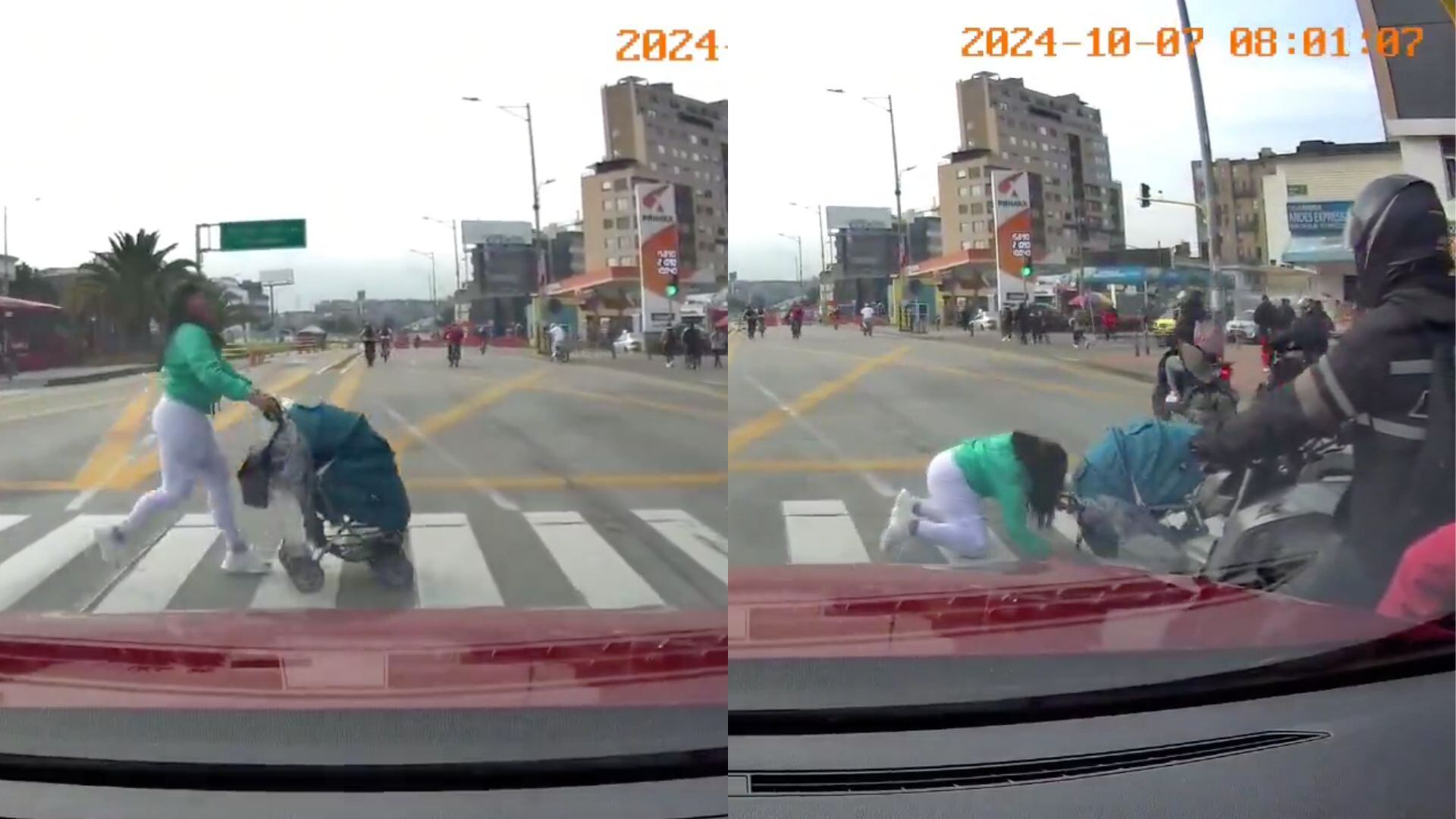La mayoría de los accidentes de tránsito no se presentan por fallas mecánicas o problemas con las vías, sino por la imprudencia o la desatención por parte de los ciudadanos. Un ejemplo de esta tesis fue una escena que fue grabada en la avenida Suba, en el norte de Bogotá, donde una mujer que llevaba un coche de un bebé por poco sufre un accidente debido a que cometió una imprudencia.