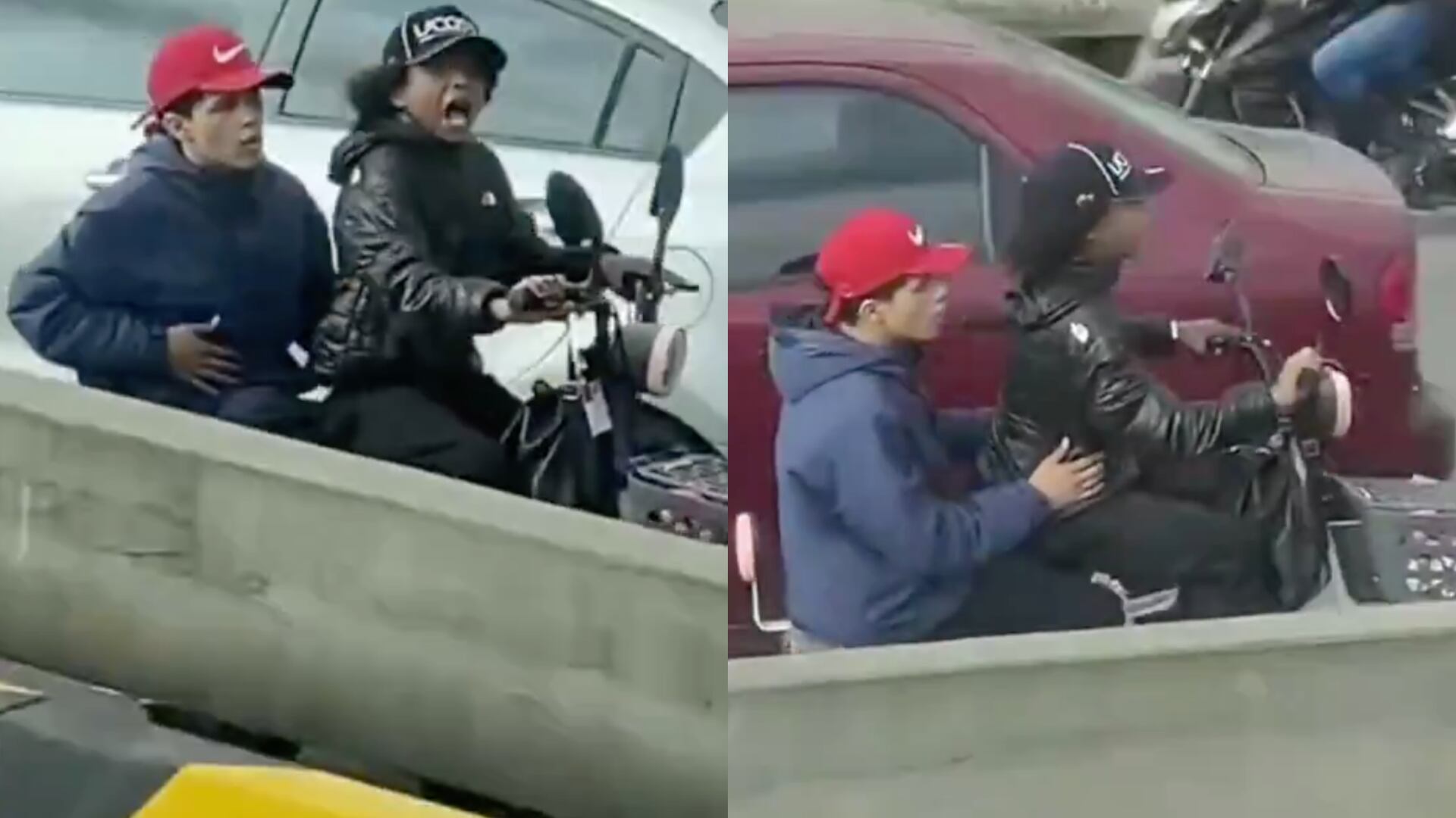 Ambos individuos subidos en una motocicleta eléctrica rosada emprendieron la huída en contravía en un puente de Bogotá, poniendo en riesgo su vida y la de los demás usuarios de la vía que estaban transitando por el puente vehicular. El vídeo fue grabado por varias personas que iban al interior de un bus articulado de TransMilenio, quienes por la ventana gritaban pidiendo ayuda a los carros para que los detuvieran, ya que habían presenciado el momento del crimen.