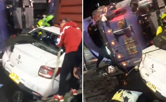 En el interior del carro se movilizaban un niño de 4 años y su padre, quien quedó atrapado entre las latas. Por esta situación, varios bomberos de diferentes estaciones de Bogotá debieron hacer presencia en la avenida Boyacá para rescatarlo.