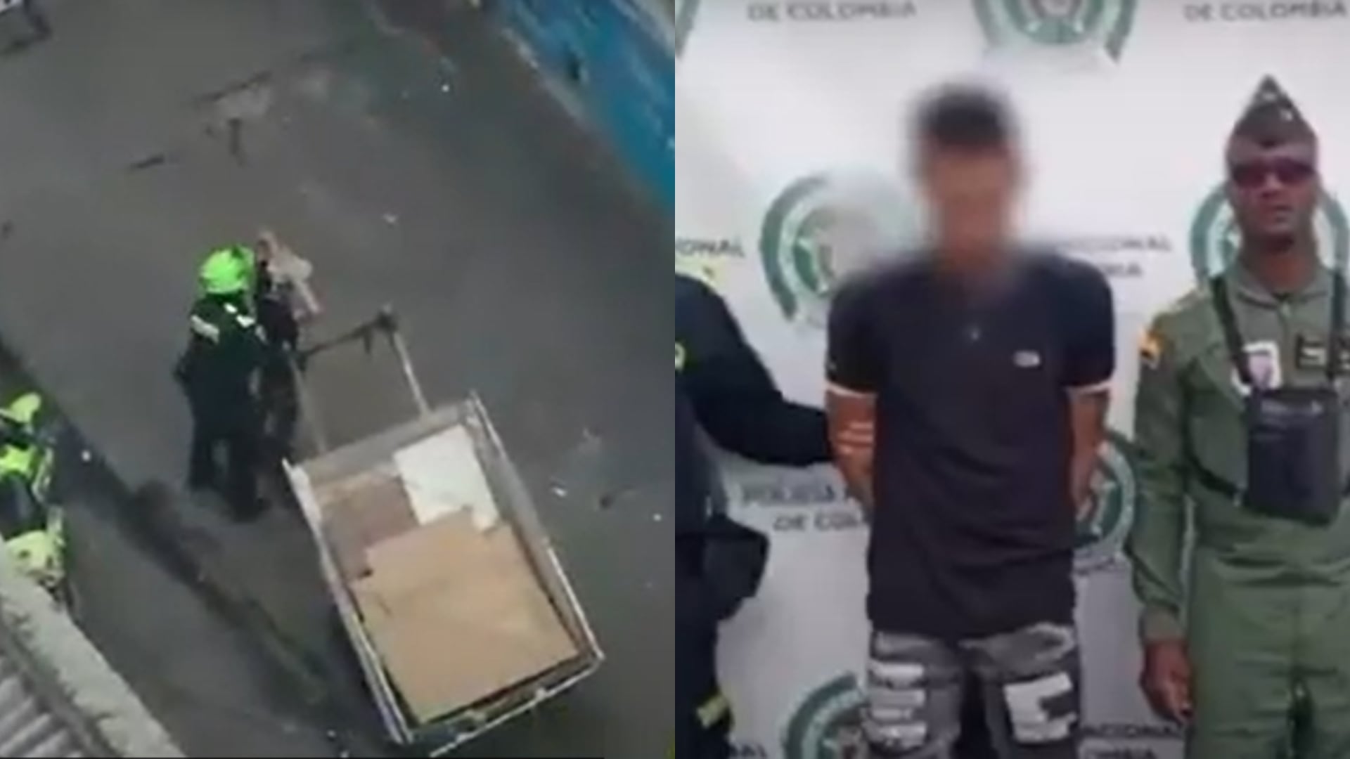 Según la Policía de Bogotá, el hombre registrado con drones en el barrio Santa Fe, simulaba ser un reciclador y ocultaba los estupefacientes en una carreta.