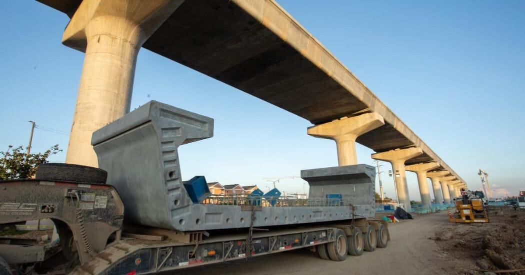 Narváez agregó: “Ya acoplamos el primer vano en la calle 8 sur y la viga lanzadora continuará subiendo dovelas. Estamos a pocos metros de llegar a los 2 kms”.